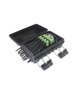 Fiber Termination box, model FAB-HGT-16IN, 16 ports, IP65, loaded with 8 SC/APC adapters, black color.